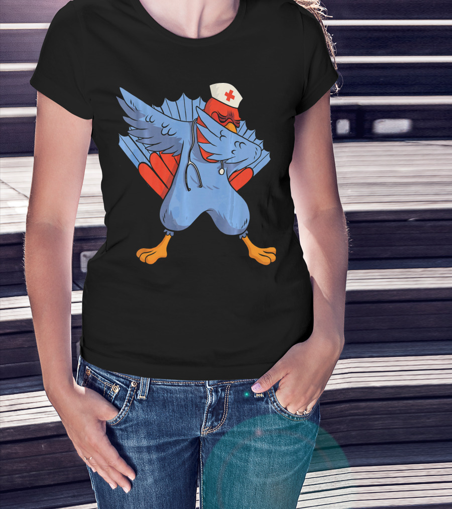 Dabbing Nurse Turkey Wearing Scrubs And Stethoscope With Nurse Cap T-Shirt