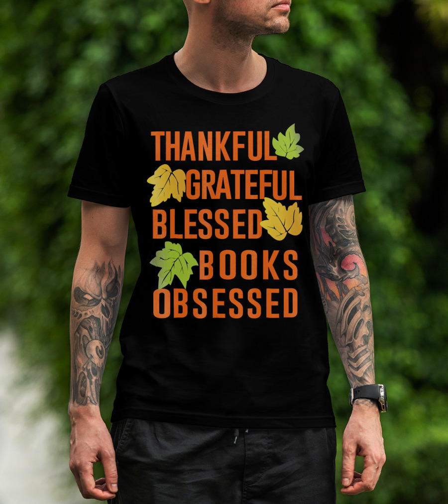 Thankful Grateful Blessed Books Obsessed T-Shirt