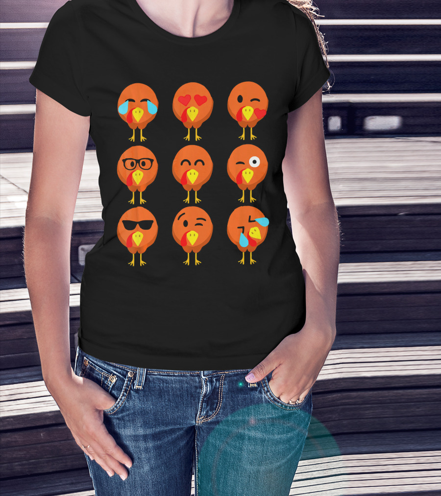 Thanksgiving Turkey Face Emojis With Funny Expressions T-Shirt