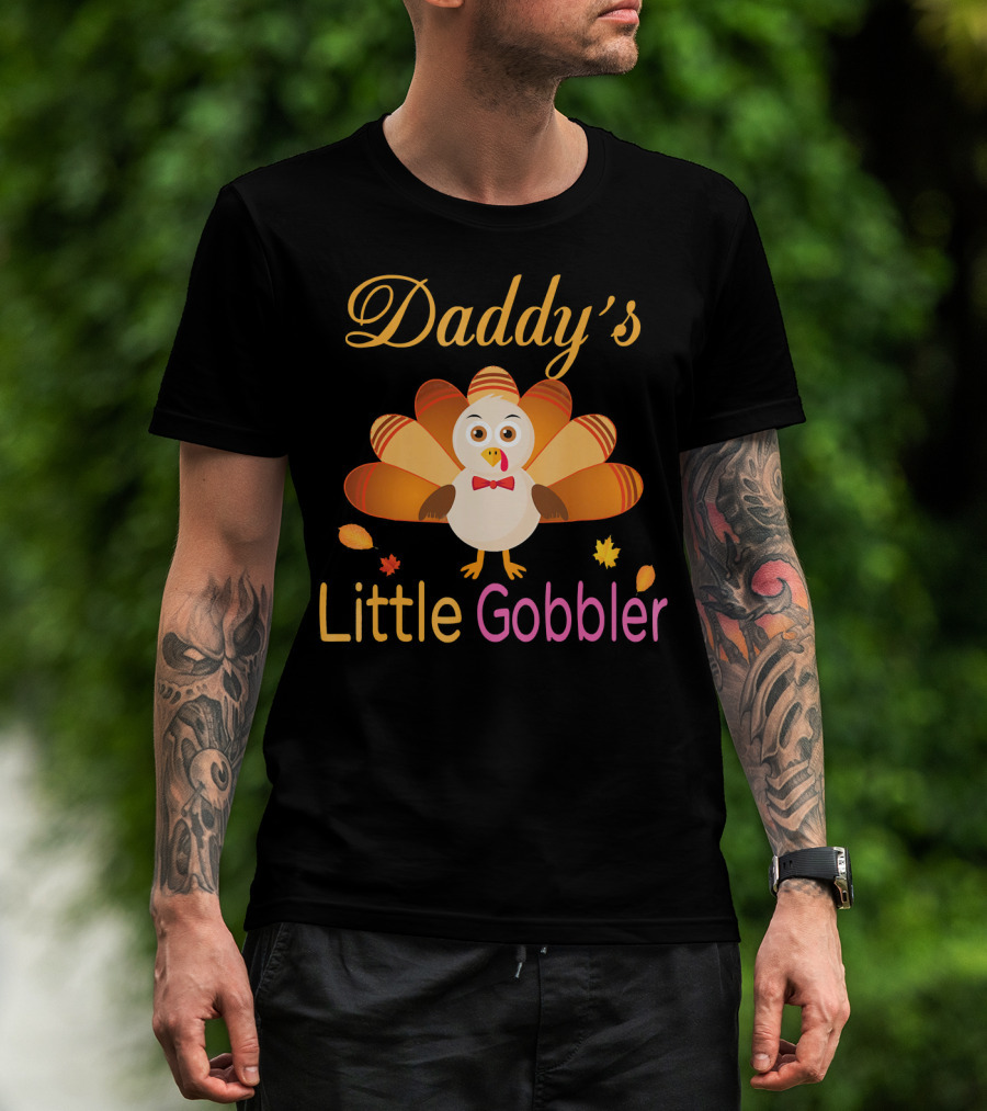Daddy's Little Gobbler Cute Turkey Thanksgiving T-Shirt