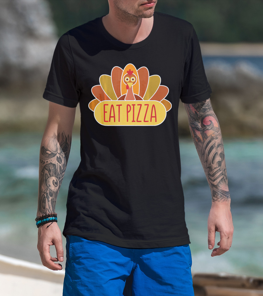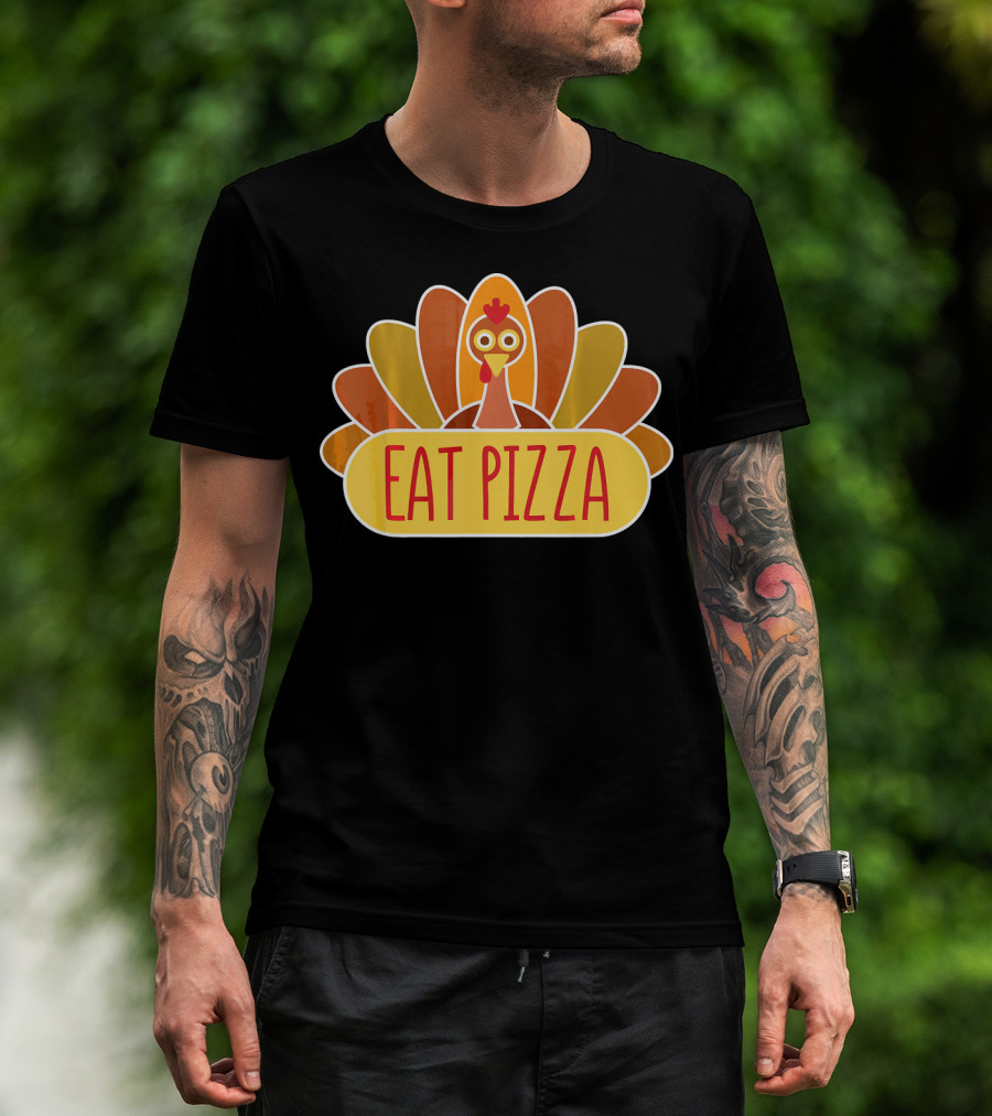 Eat Pizza Cute Thanksgiving Day Funny Turkey T-Shirt