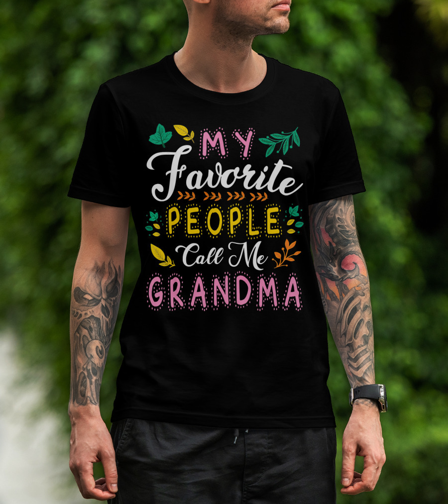 My Favorite People Call Me Grandma With Colorful Leaves And Flowers T-Shirt