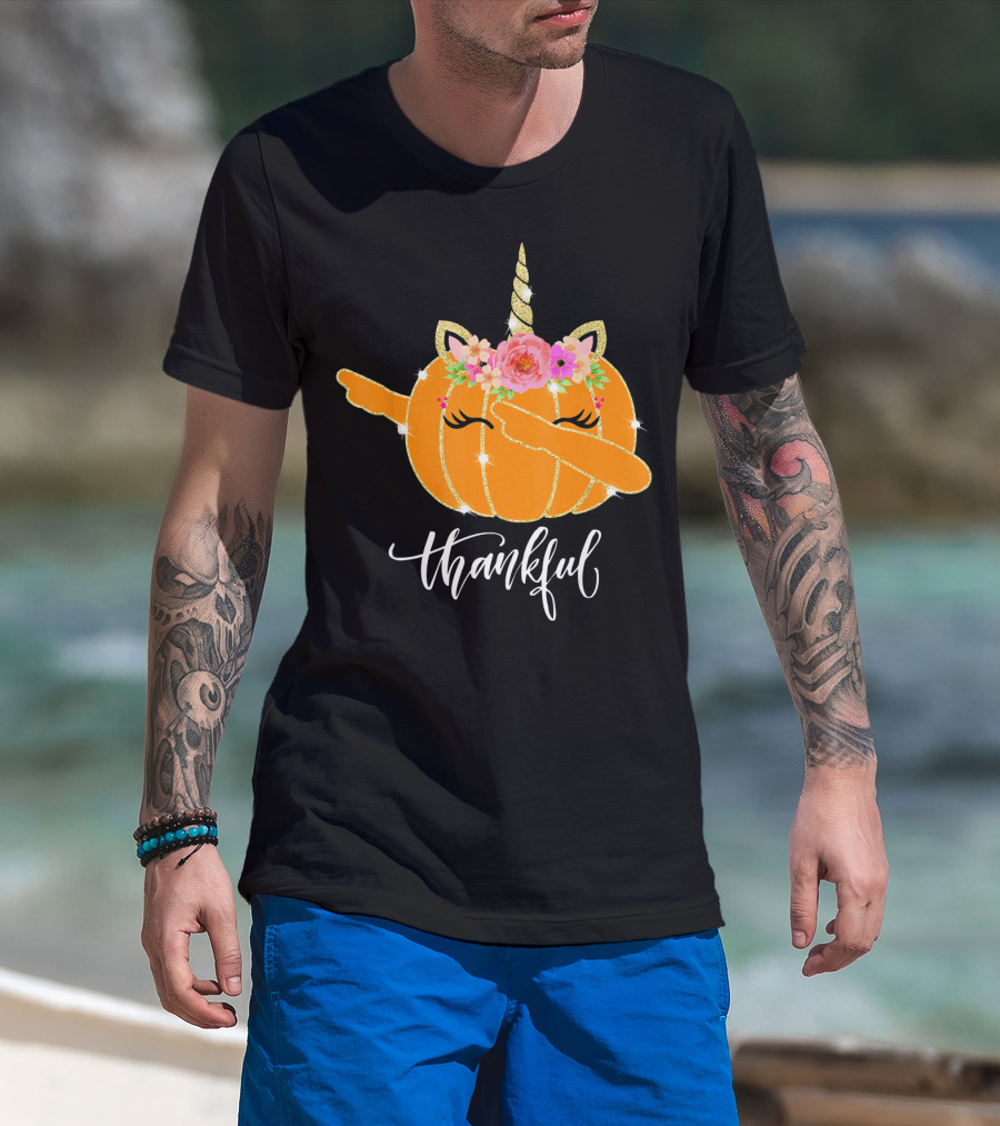Thankful Dabbing Pumpkin Unicorn With Floral Crown T-Shirt