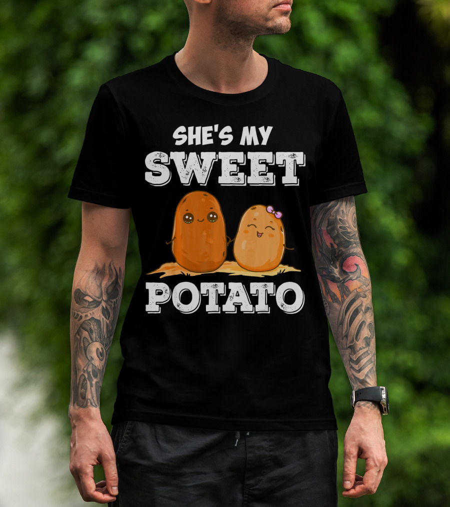 The She's My Sweet Potato T-shirt is designed for everyday wear and a consistent fit. Fabric is pre-shrunk ring-spun cotton with durable stitching. See the size chart below for exact measurements.