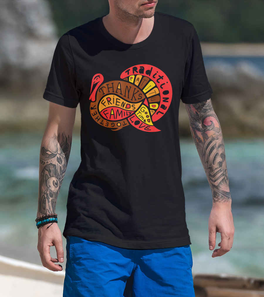 Thanksgiving Thanks Gratitude Friends Family Love Together Traditional Turkey T-Shirt