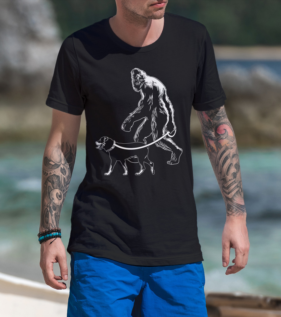 Bigfoot Walking Rottweiler Dog T-Shirt