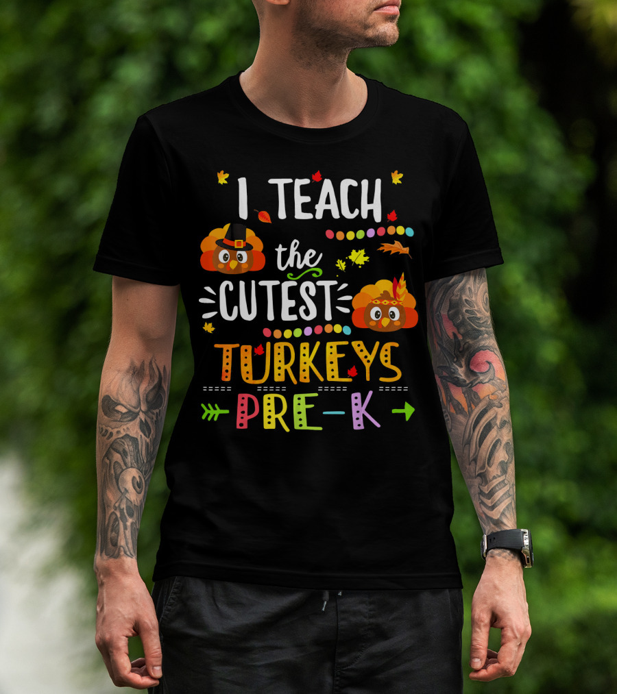 I Teach The Cutest Turkeys Pre K Thanksgiving Leaves Fall T-Shirt