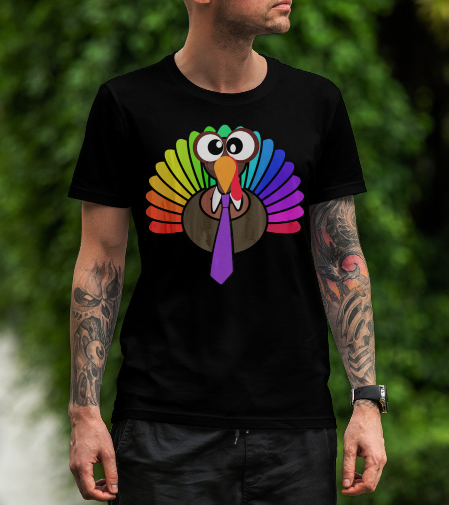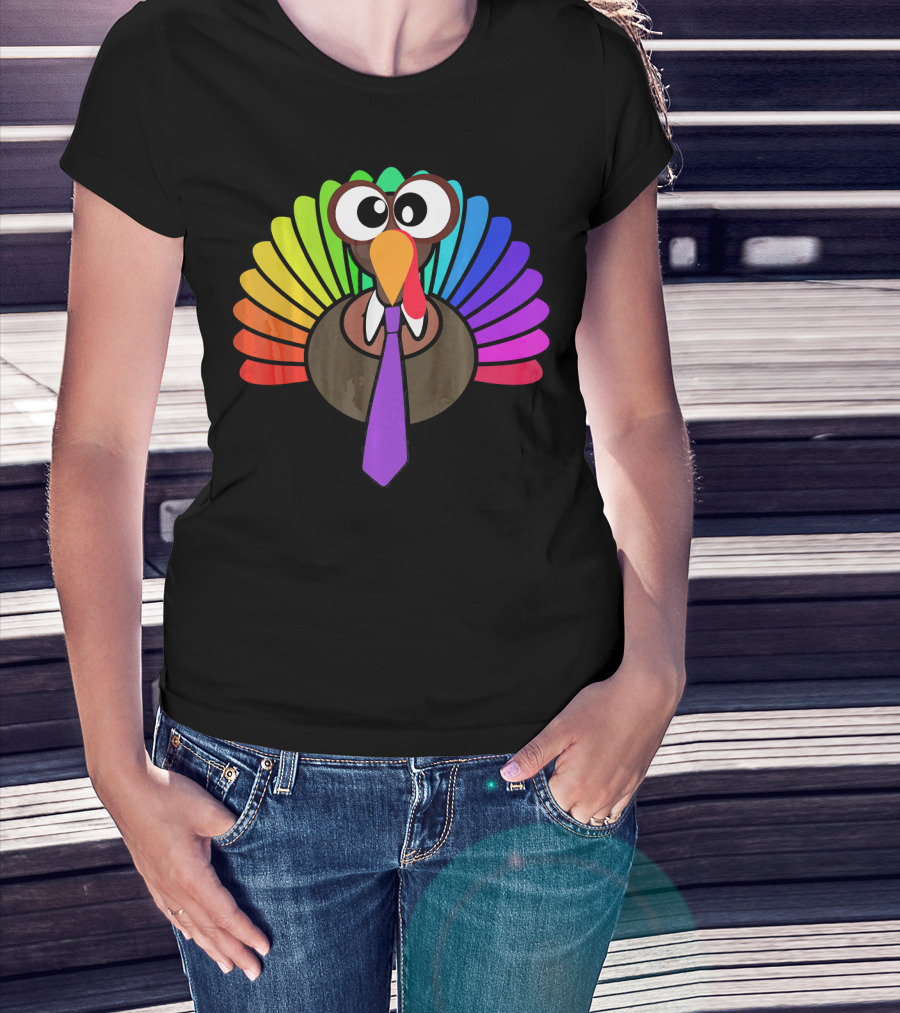 Turkey Face Tie Thanksgiving Colorful Feathers T-Shirt