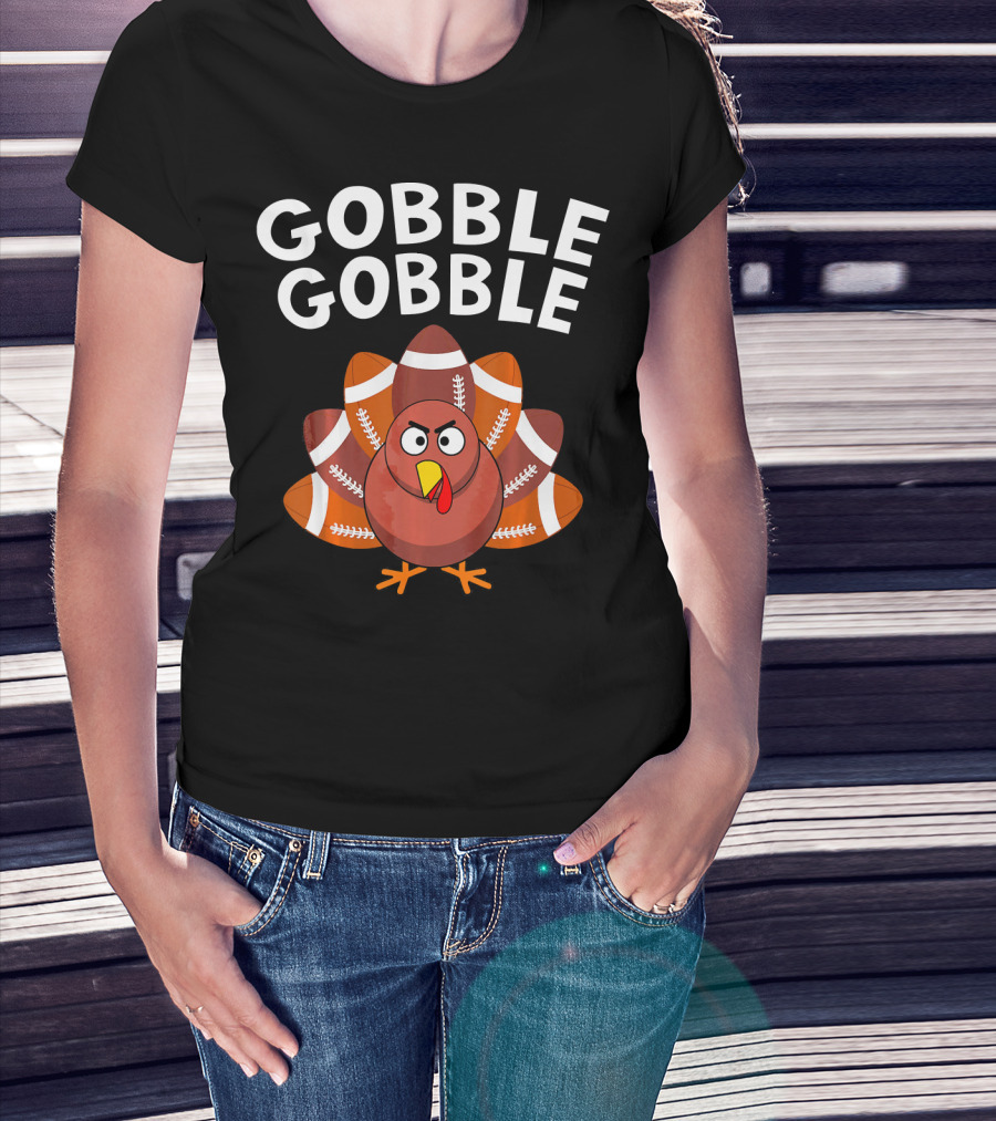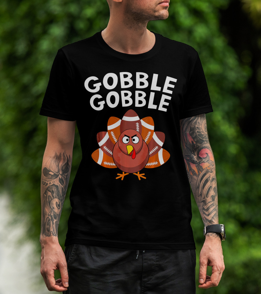 Gobble Gobble Turkey With Football Tail Feathers T-Shirt