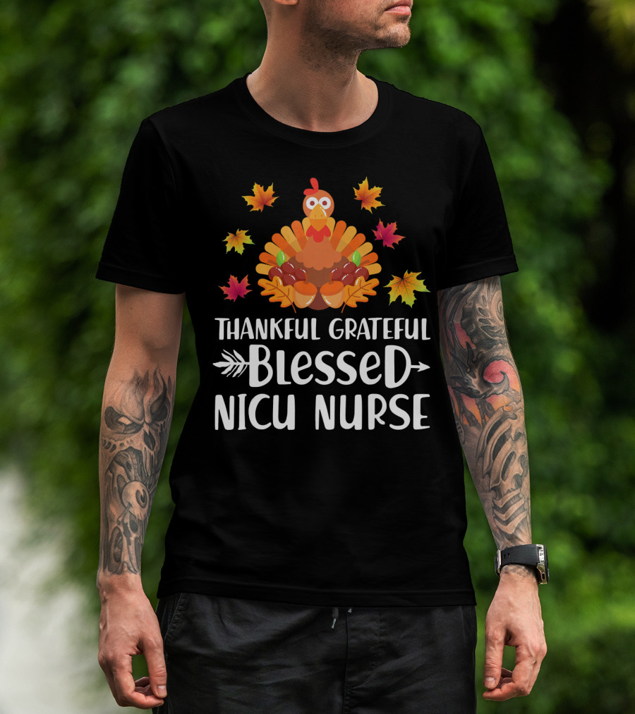 Thankful Grateful Blessed NICU Nurse Turkey Leaves T-Shirt