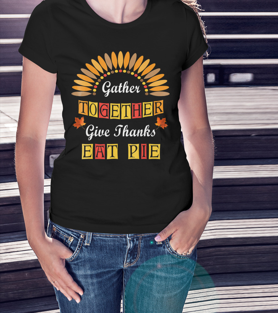 Gather Together Give Thanks Eat Pie Thanksgiving Turkey Autumn Leaves T-Shirt