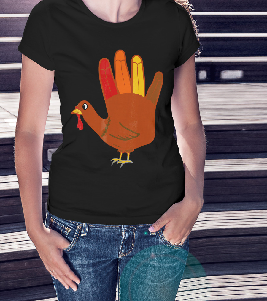 The Thanksgiving Handprint Turkey T-shirt is designed for everyday wear and a consistent fit. Fabric is pre-shrunk ring-spun cotton with durable stitching. See the size chart below for exact measurements.