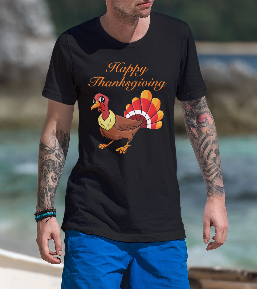 The Happy Thanksgiving Turkey Celebration Day T-shirt is designed for everyday wear and a consistent fit. Fabric is pre-shrunk ring-spun cotton with durable stitching. See the size chart below for exact measurements.
