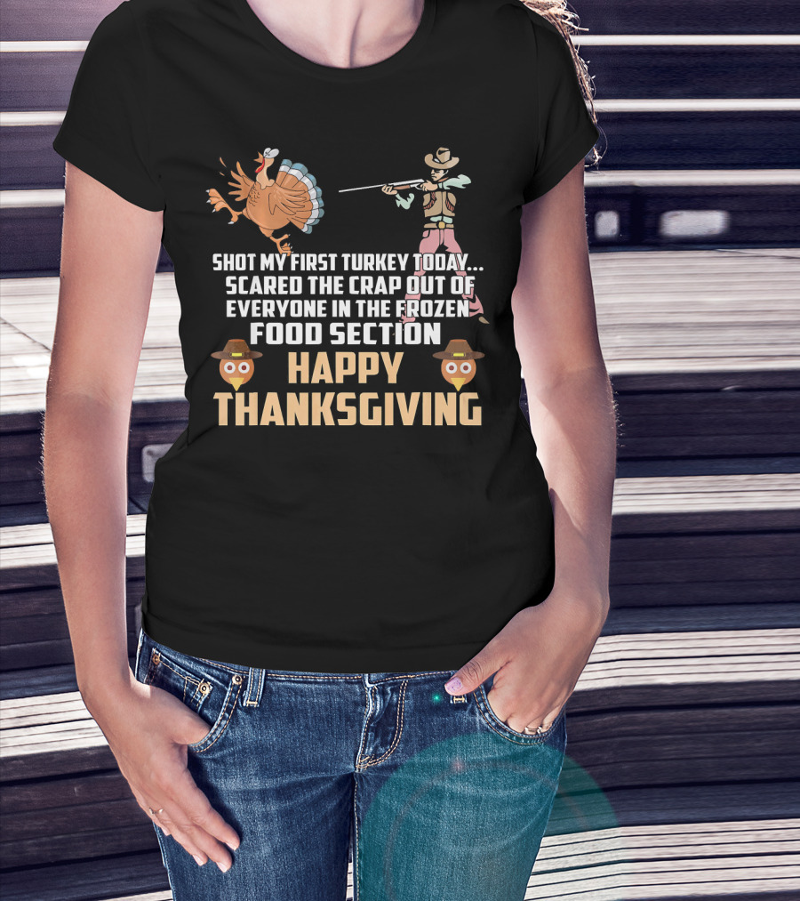 Shot My First Turkey Today Scared Frozen Food Section Happy Thanksgiving T-Shirt