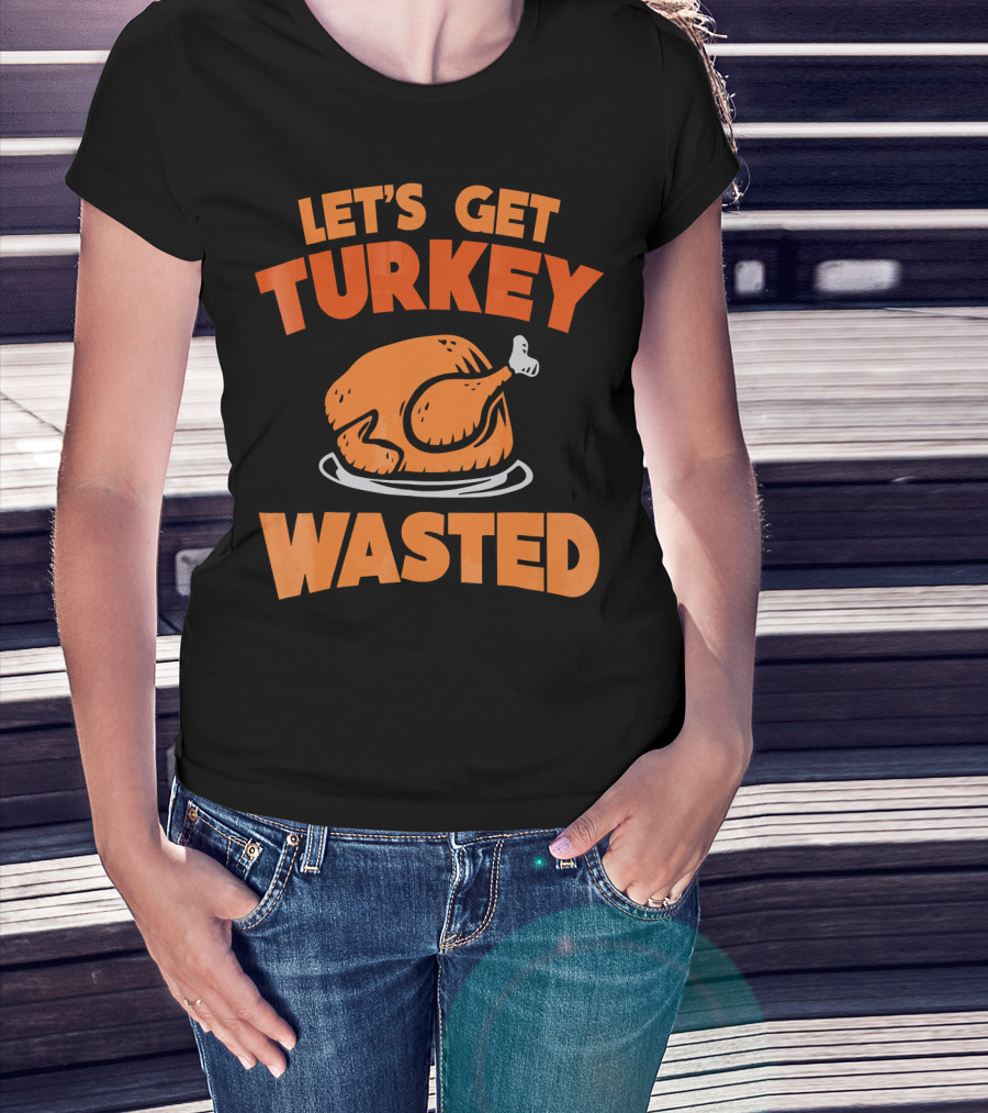 Let's Get Turkey Wasted Thanksgiving Pun T-Shirt