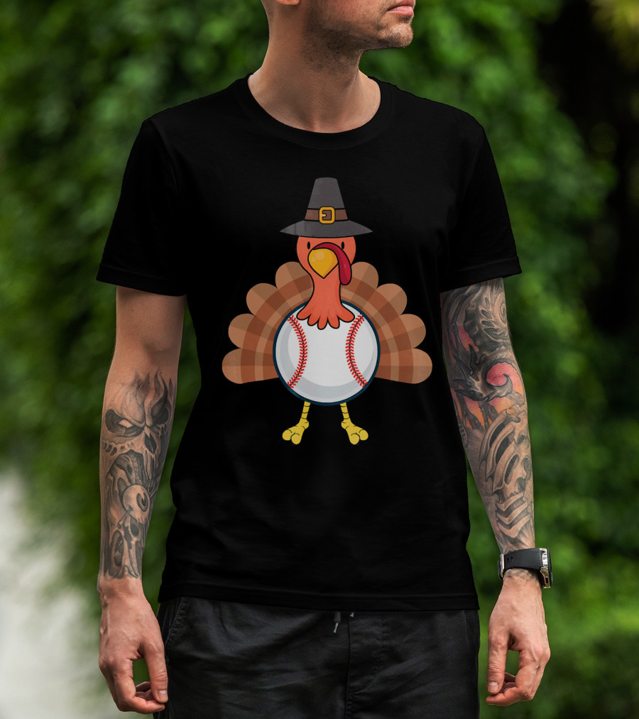 Thanksgiving Pilgrim Turkey Baseball Fusion T-Shirt