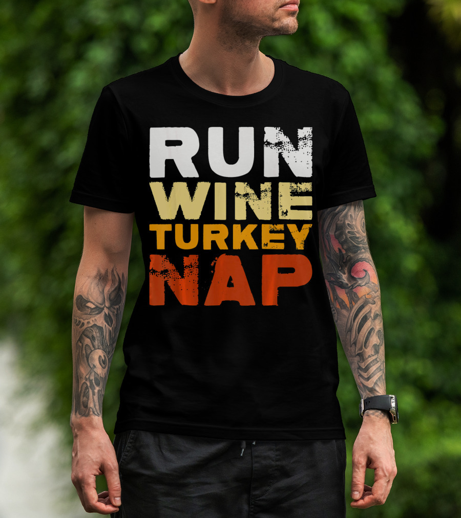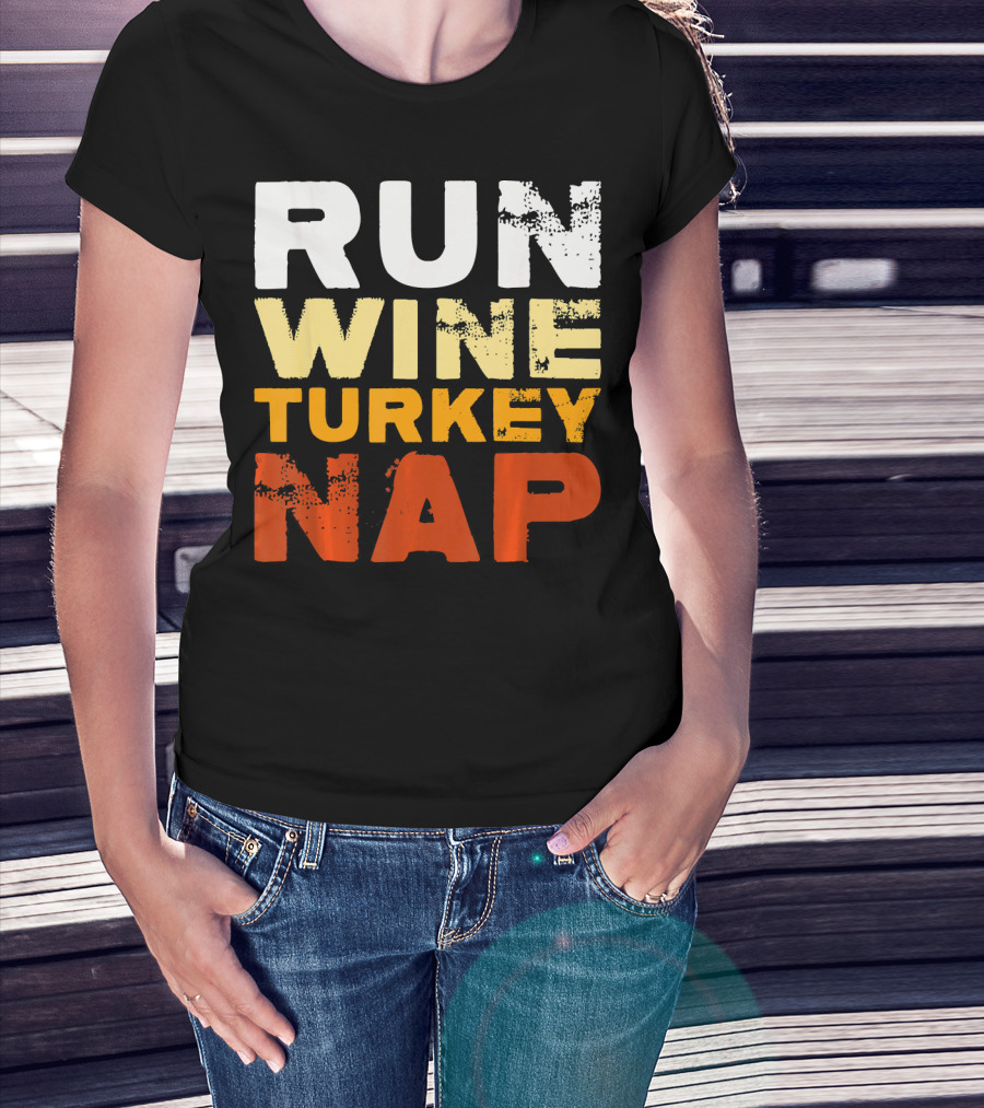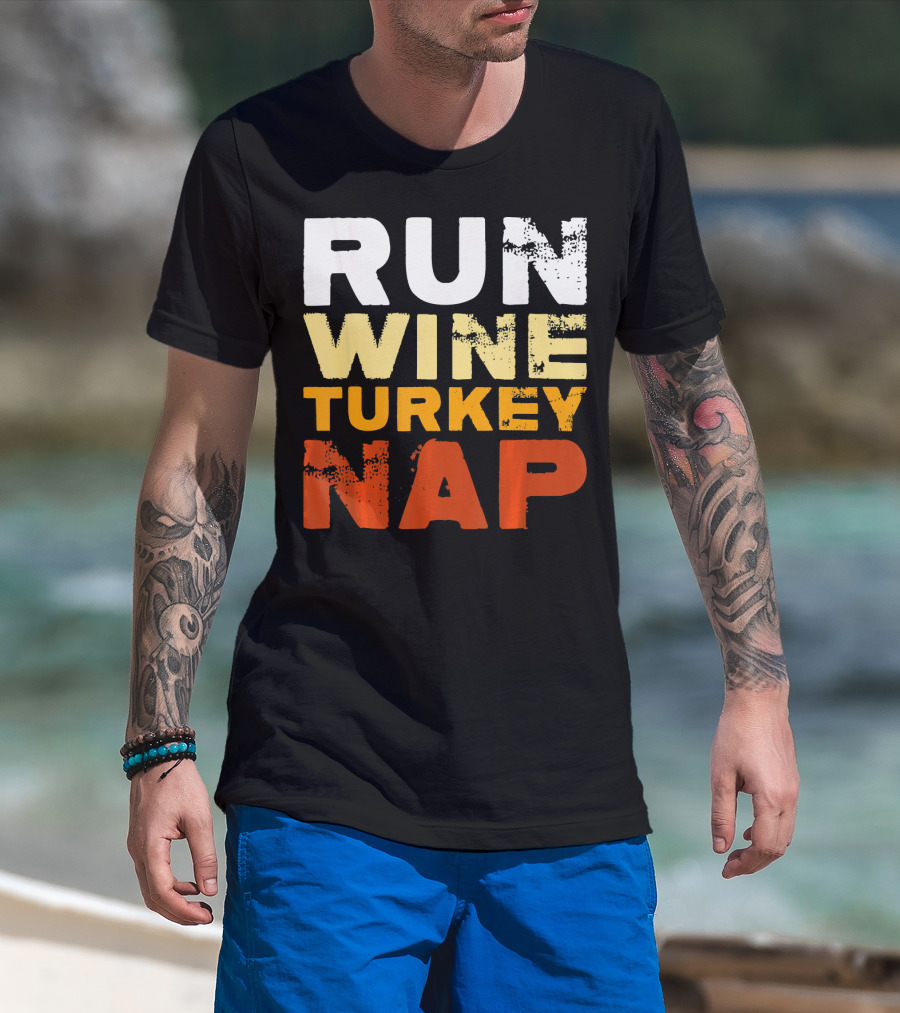 Run Wine Turkey Nap Thanksgiving Humor T-Shirt
