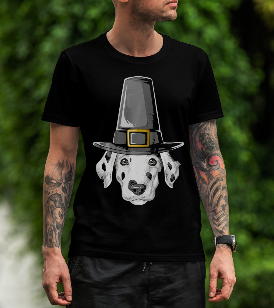 Dalmatian Dog In Pilgrim Hat Thanksgiving T-Shirt