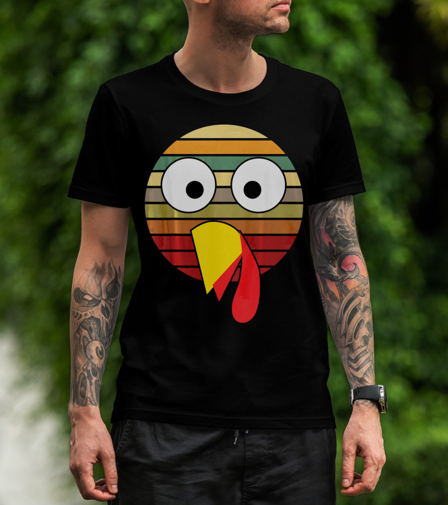 Retro Striped Turkey Face Thanksgiving Halloween Costume T-Shirt