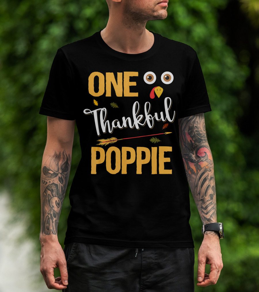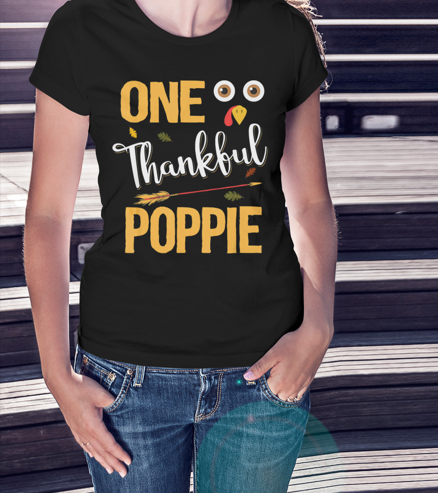 One Thankful Poppie Turkey Face Thanksgiving Elements T-Shirt