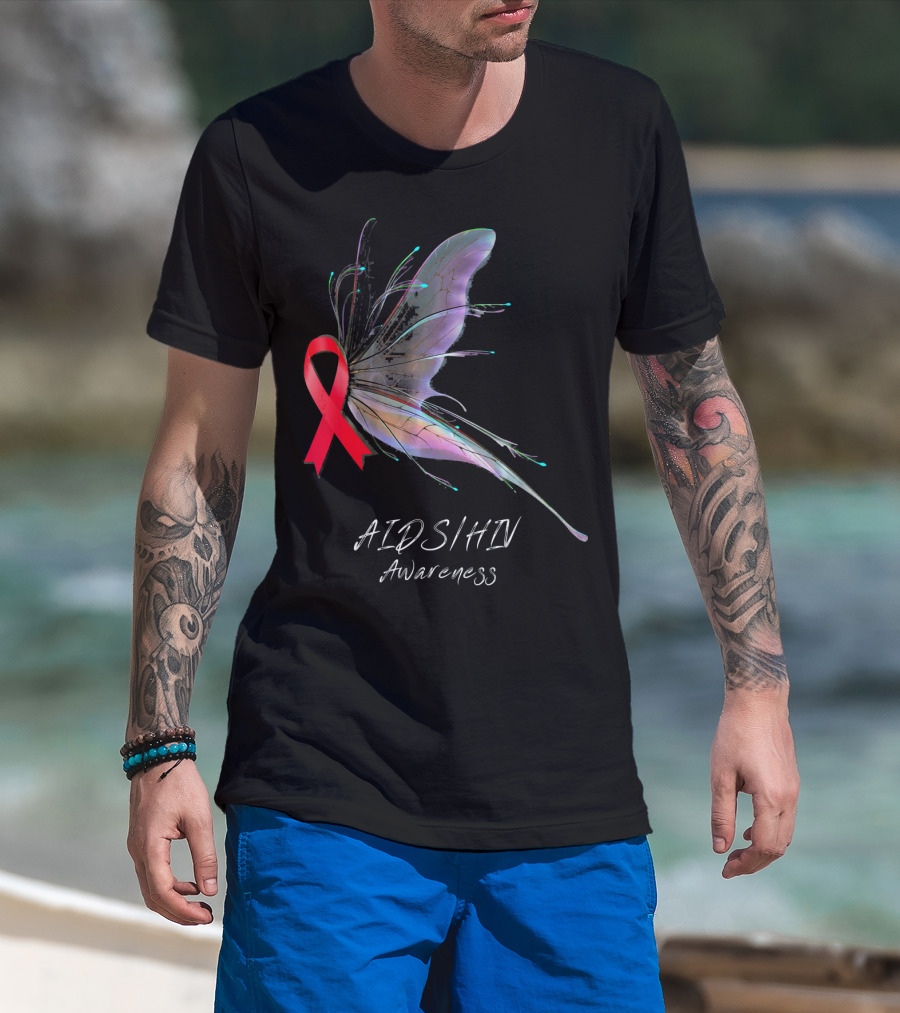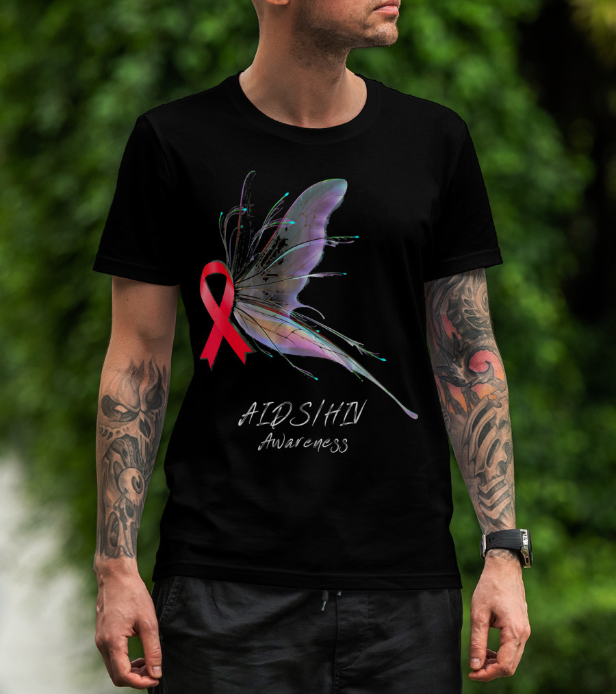 The AIDSHIV Awareness Butterfly T-shirt is designed for everyday wear and a consistent fit. Fabric is pre-shrunk ring-spun cotton with durable stitching. See the size chart below for exact measurements.