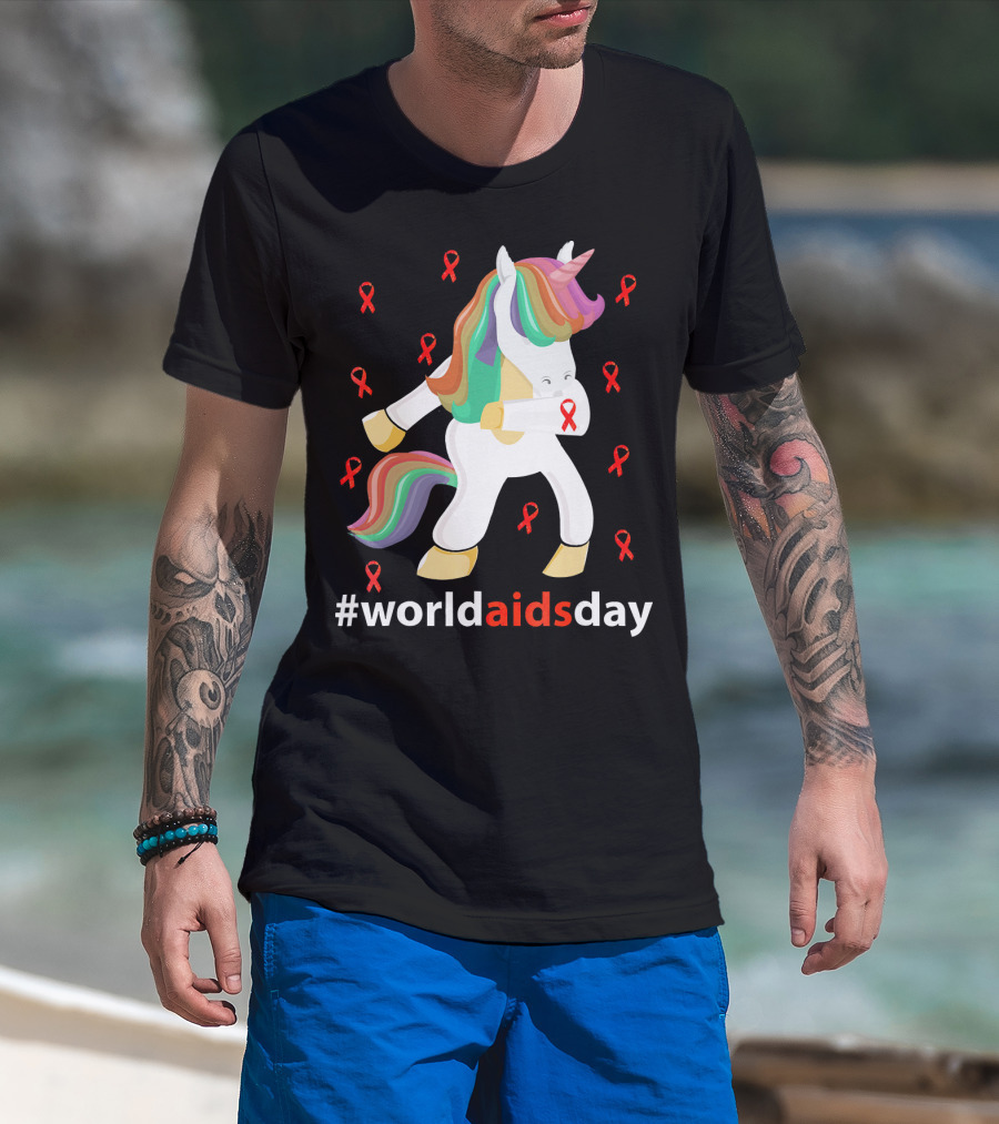 WorldAIDSDay Unicorn With Red Ribbons December 1st T-Shirt