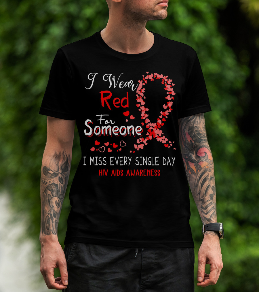 I Wear Red For Someone I Miss Every Single Day HIV AIDS Awareness T-Shirt