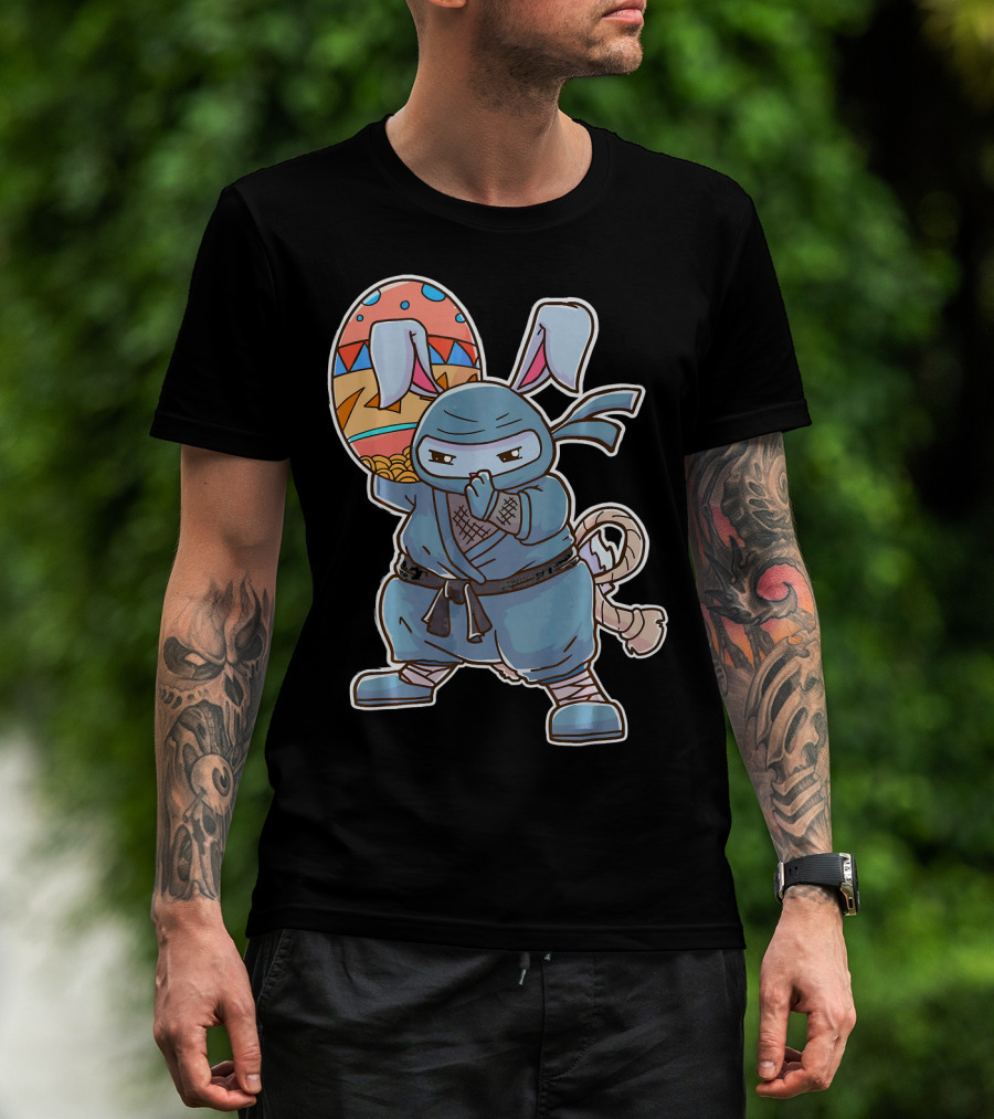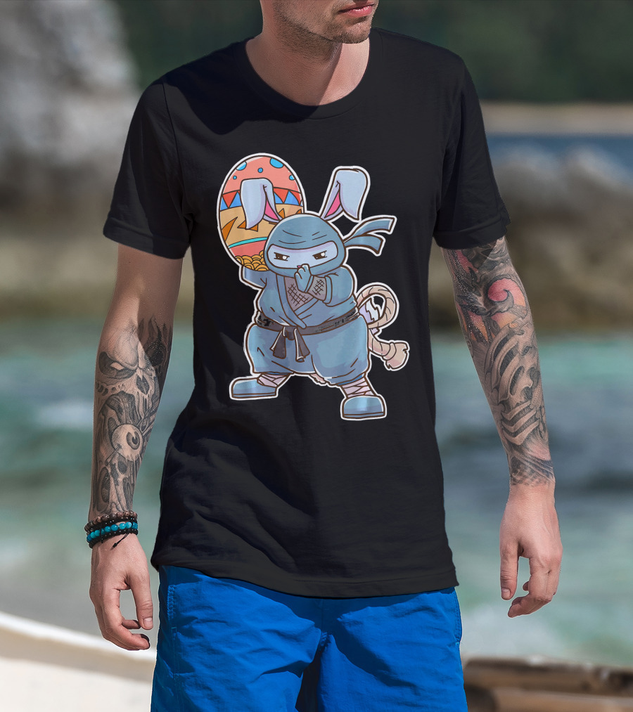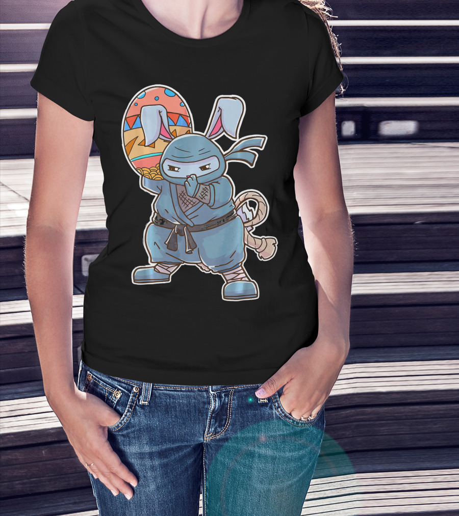 Easter Bunny Ninja Egg Master In Blue Robe With Colorful Egg T-Shirt
