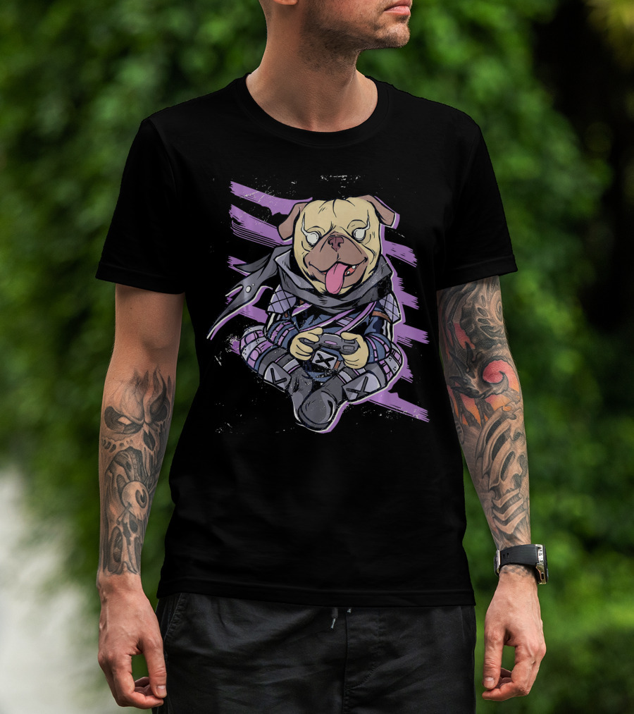 Ninja Pug Playing Video Game Controller Epic Battle T-Shirt