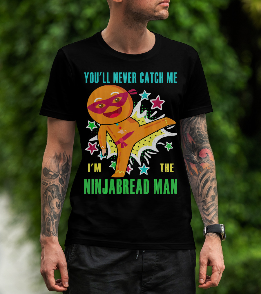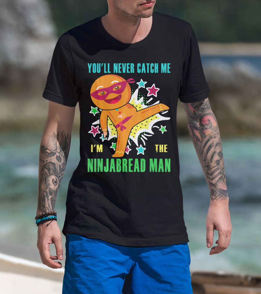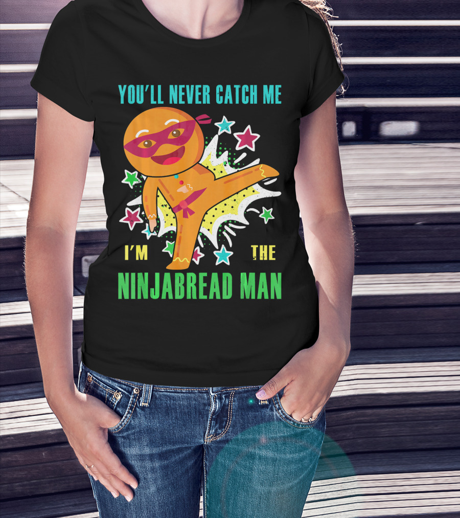 You'll Never Catch Me I'm The Ninjabread Man Funny Christmas Ninja Gingerbread T-Shirt