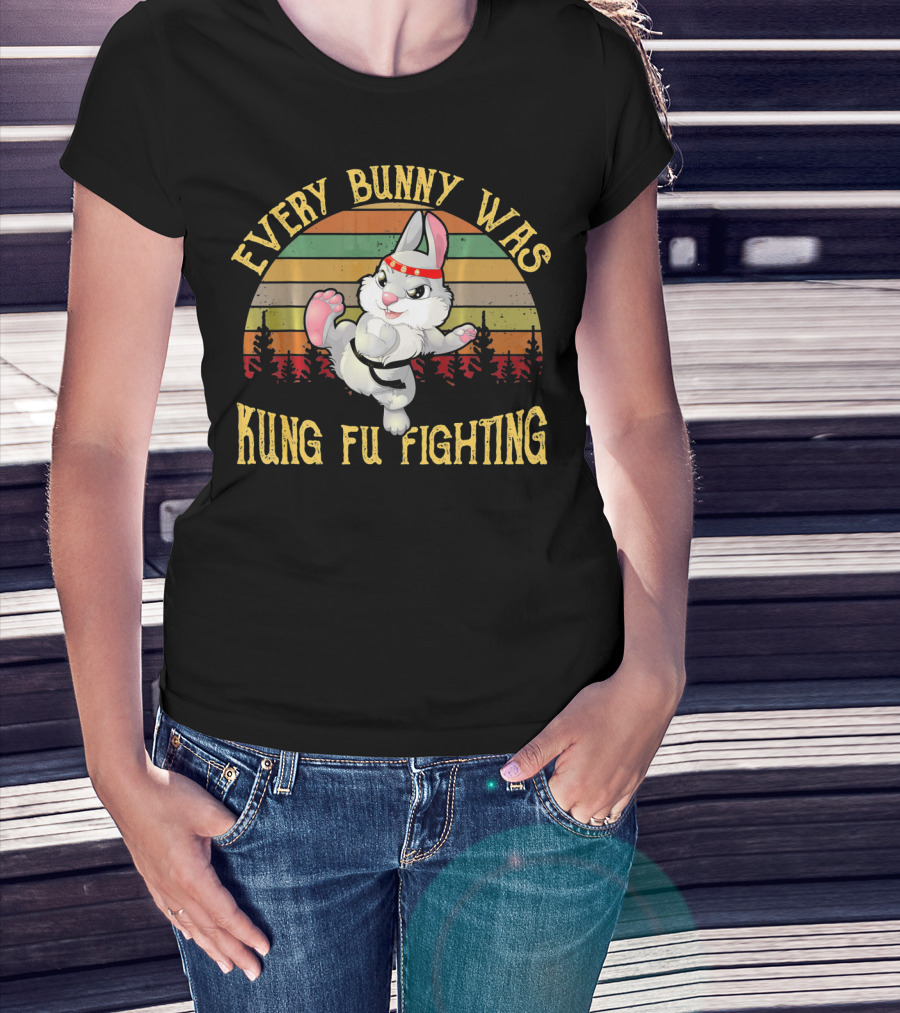 Every Bunny Was Kung Fu Fighting Retro Vintage Easter Rabbit T-Shirt