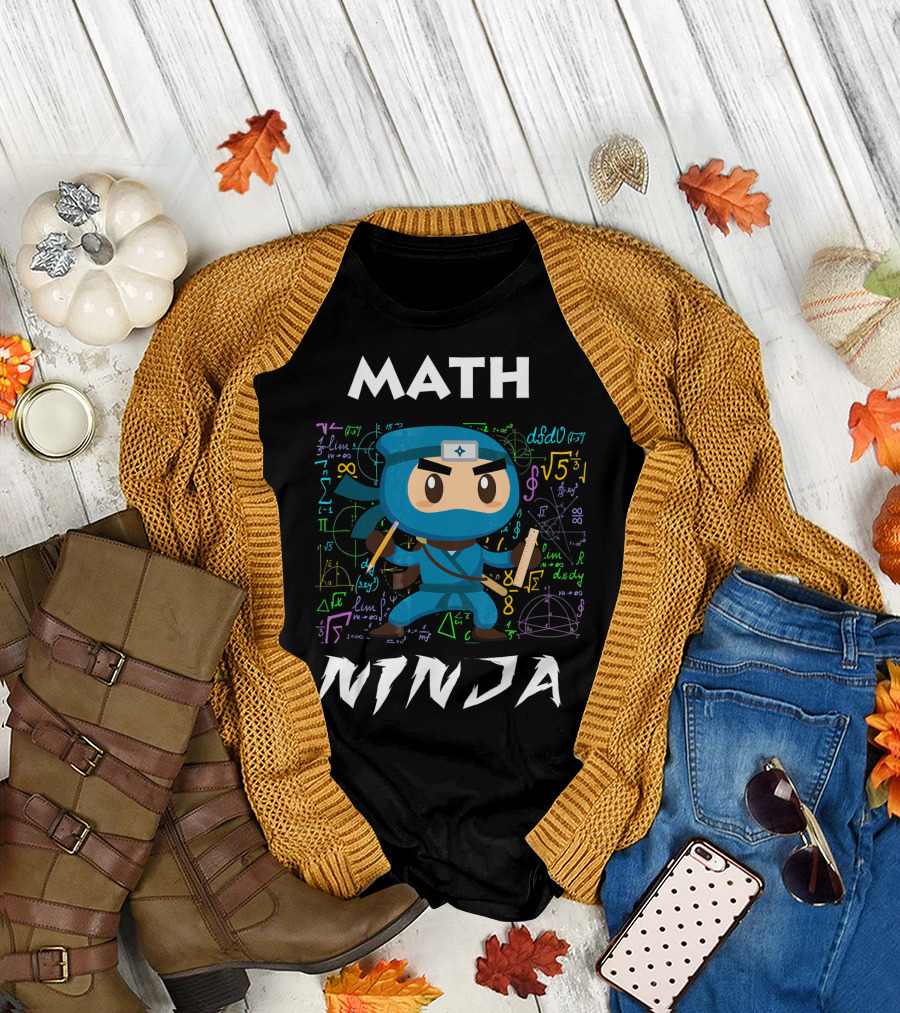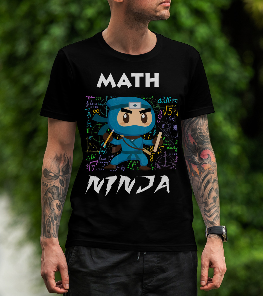 Math Ninja Dark With Equations And Symbols T-Shirt