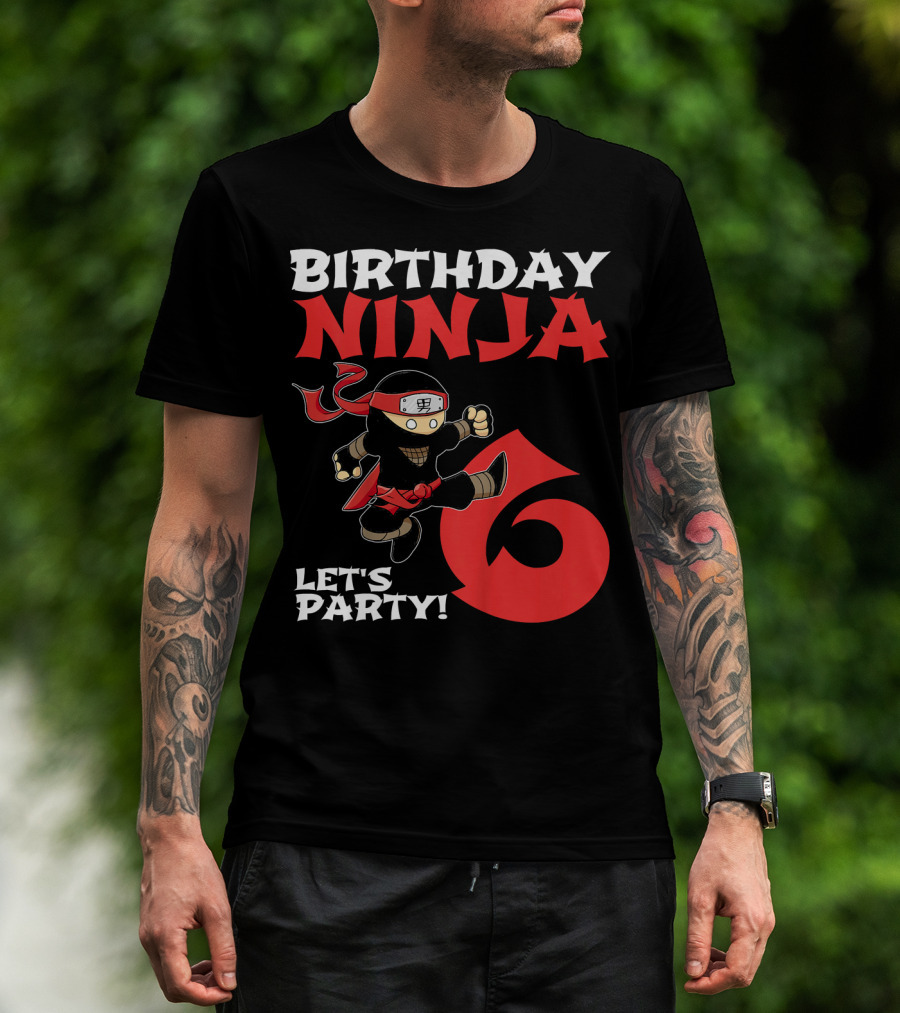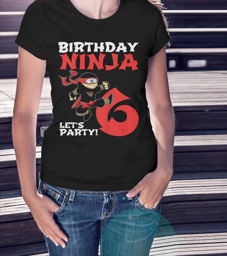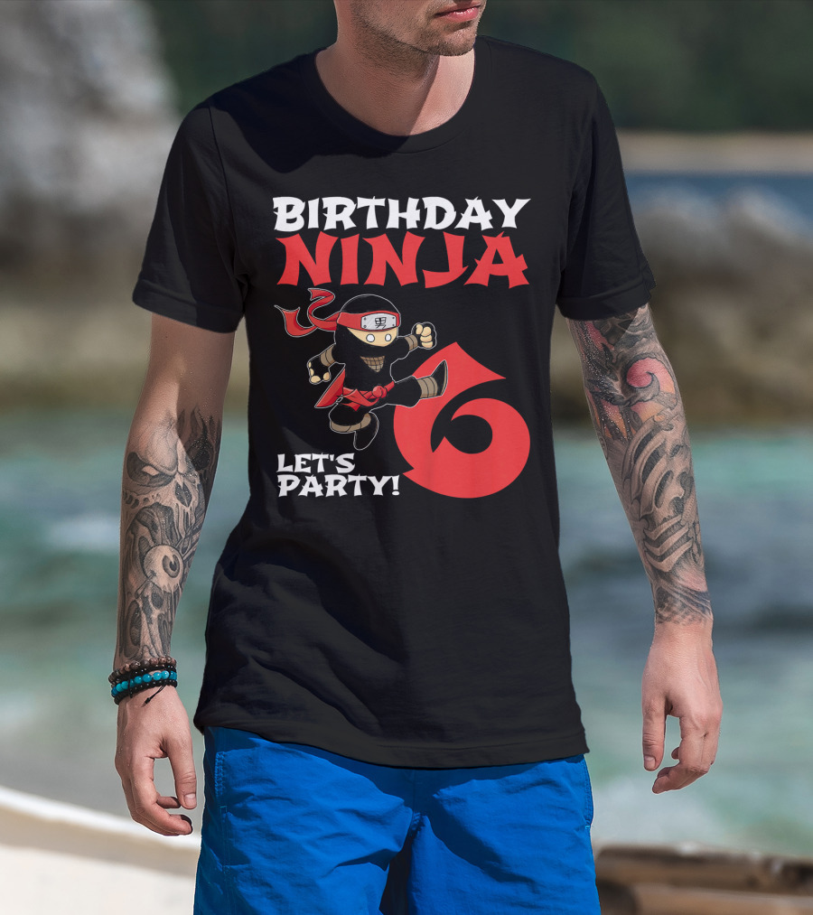 The Birthday Ninja 6 Let's Party T-shirt is designed for everyday wear and a consistent fit. Fabric is pre-shrunk ring-spun cotton with durable stitching. See the size chart below for exact measurements.