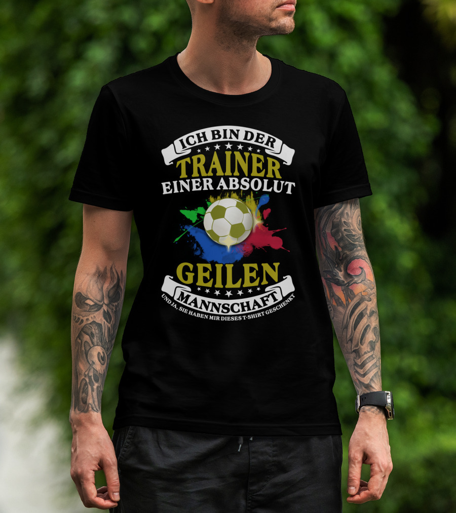 The Ich Bin Der Trainer Einer Absolut Geilen Mannschaft Und Ja Sie Haben Mir Dieses T-Shirt Geschenkt T-shirt is designed for everyday wear and a consistent fit. Fabric is pre-shrunk ring-spun cotton with durable stitching. See the size chart below for exact measurements.