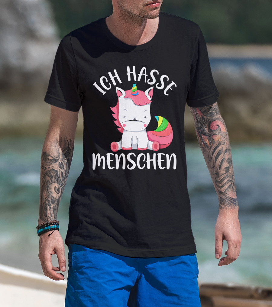 The Ich Hasse Menschen Einhorn T-shirt is designed for everyday wear and a consistent fit. Fabric is pre-shrunk ring-spun cotton with durable stitching. See the size chart below for exact measurements.