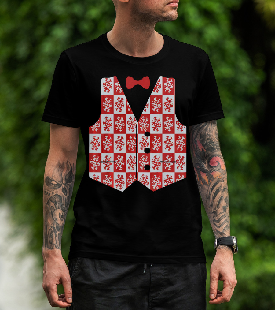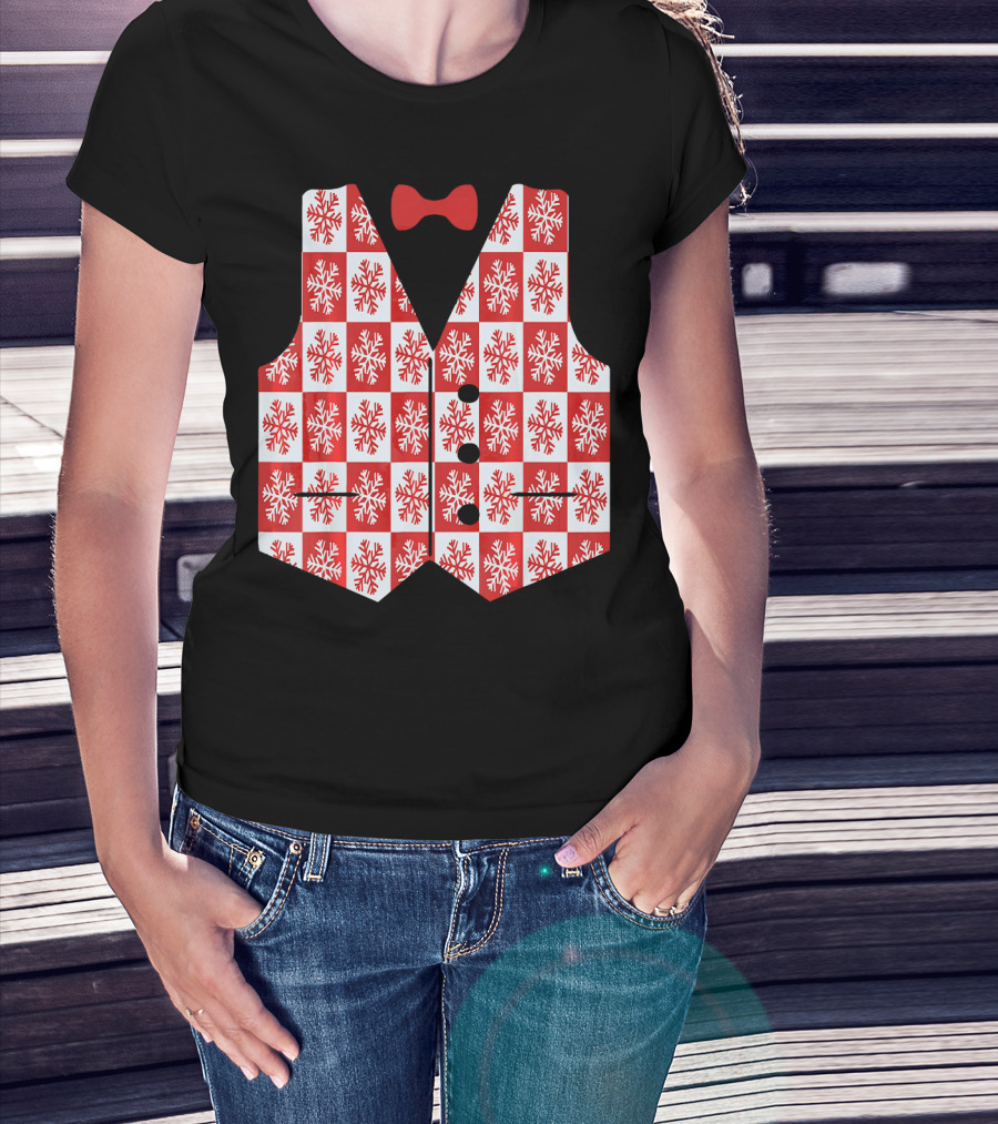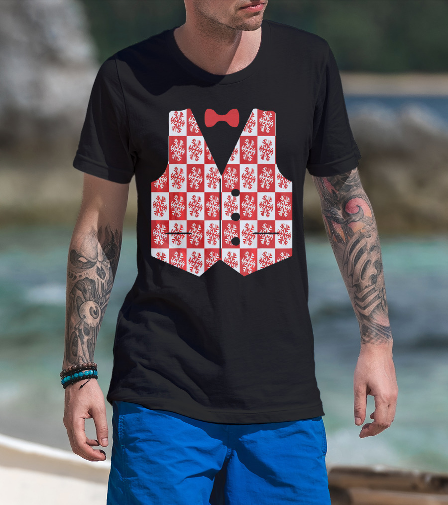 Red And White Snowflake Vest With Bow Tie T-Shirt