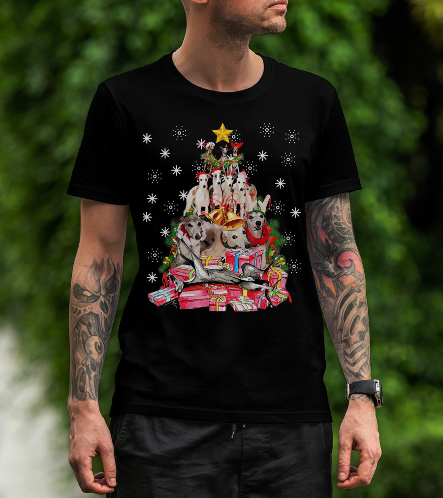 Whippets Christmas Tree With Star And Presents T-Shirt