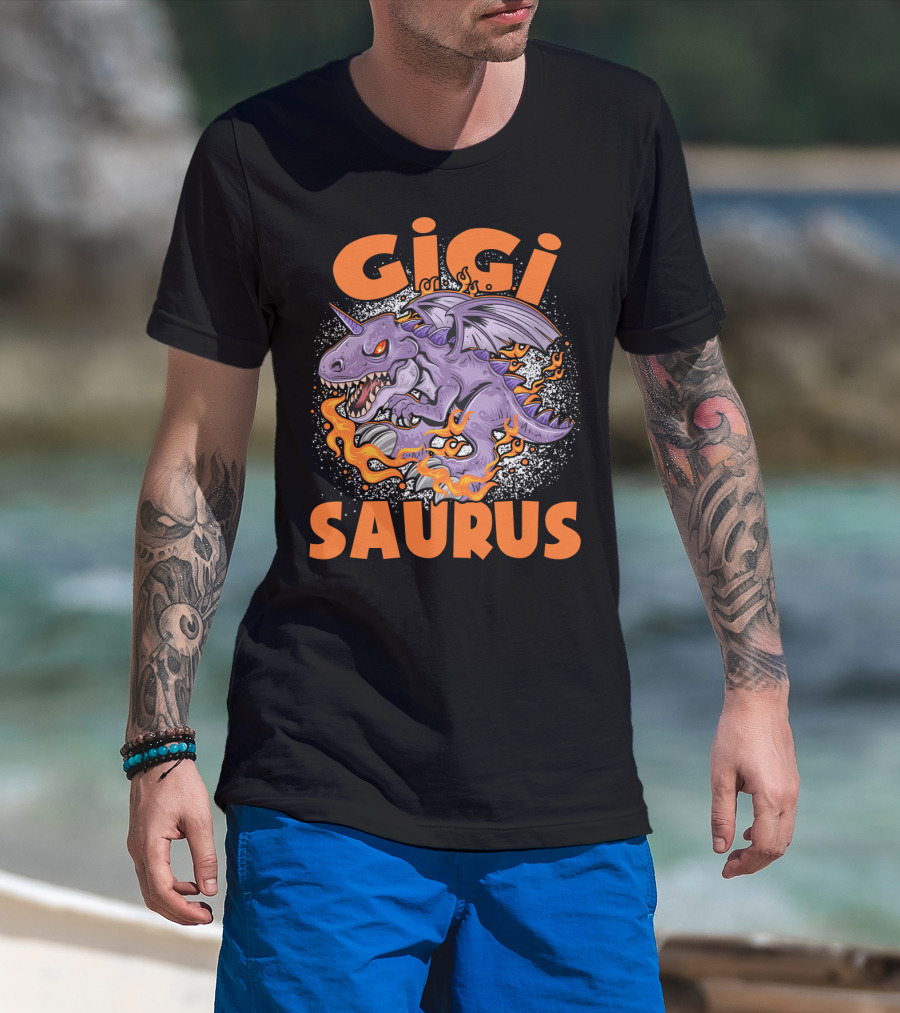 GIGI SAURUS Purple Fire-Breathing Dragon Dinosaur With Horns And Wings T-Shirt