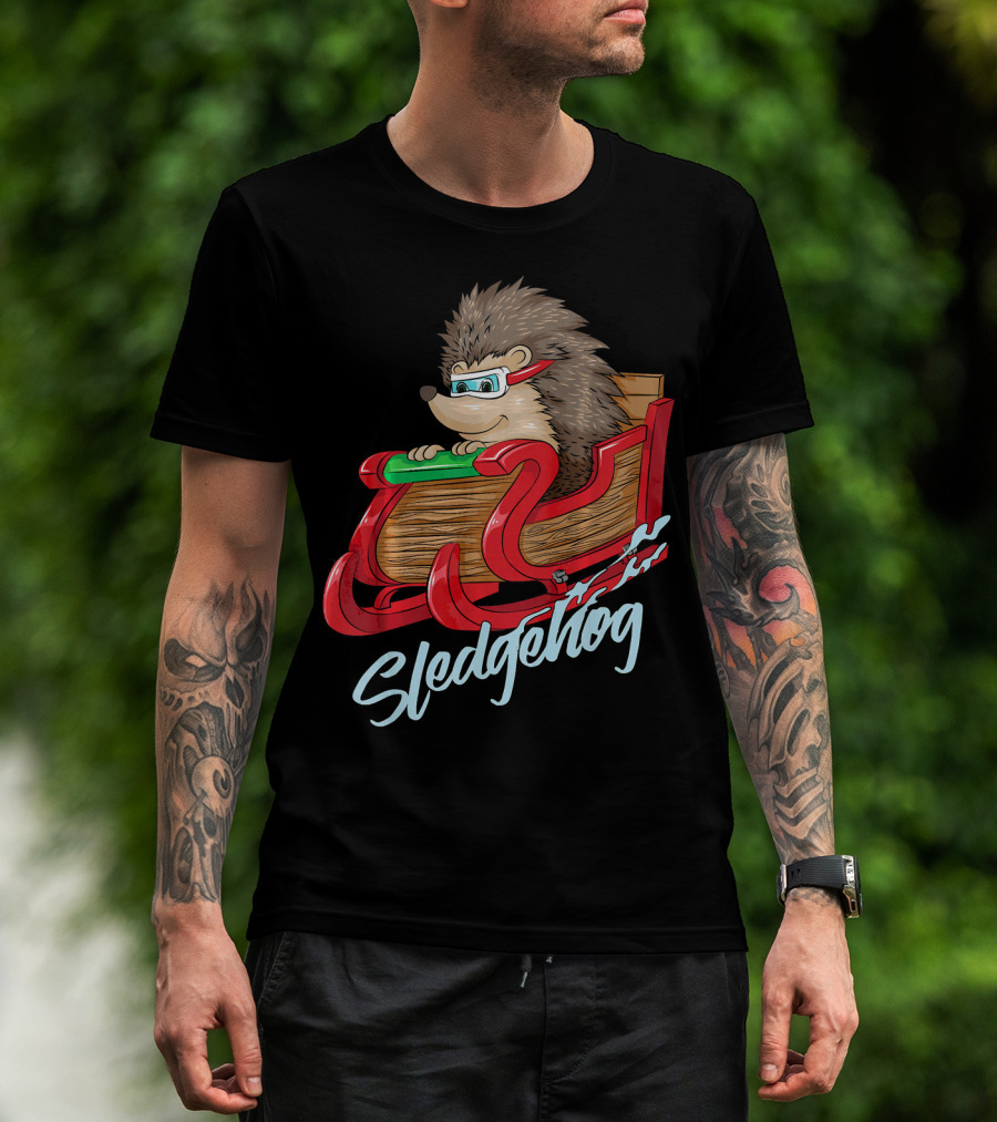 Sledgehog Funny Hedgehog Sleigh Pet Christmas T-Shirt