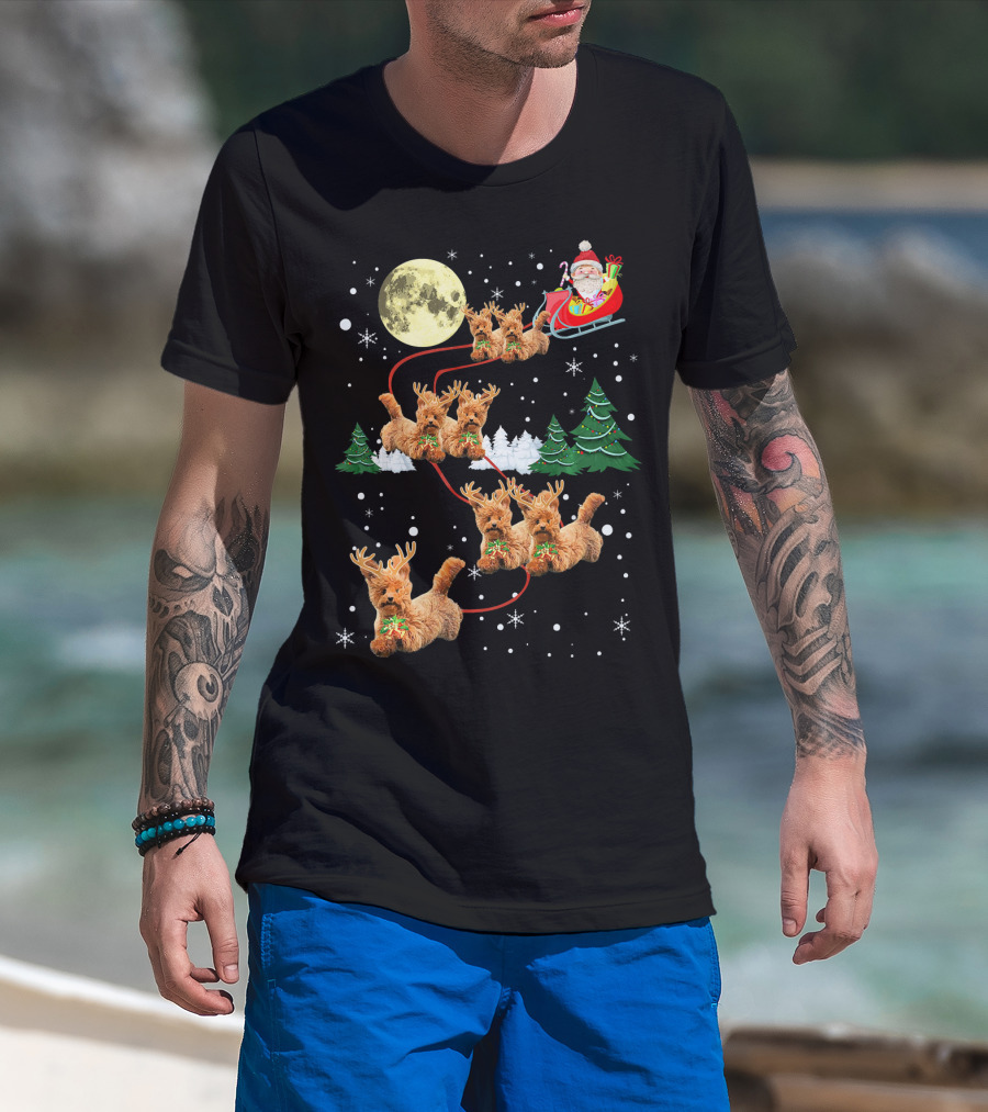 Funny Reindeer Dogs With Santa Sleigh Under Full Moon T-Shirt
