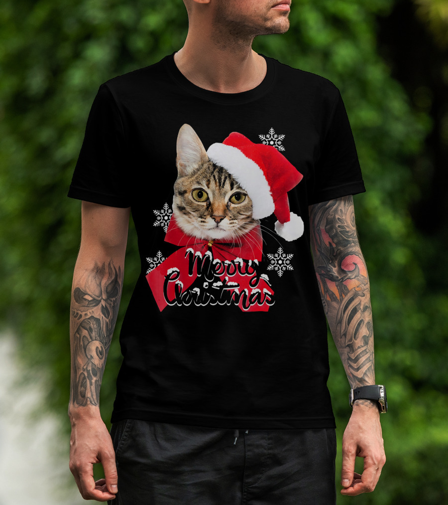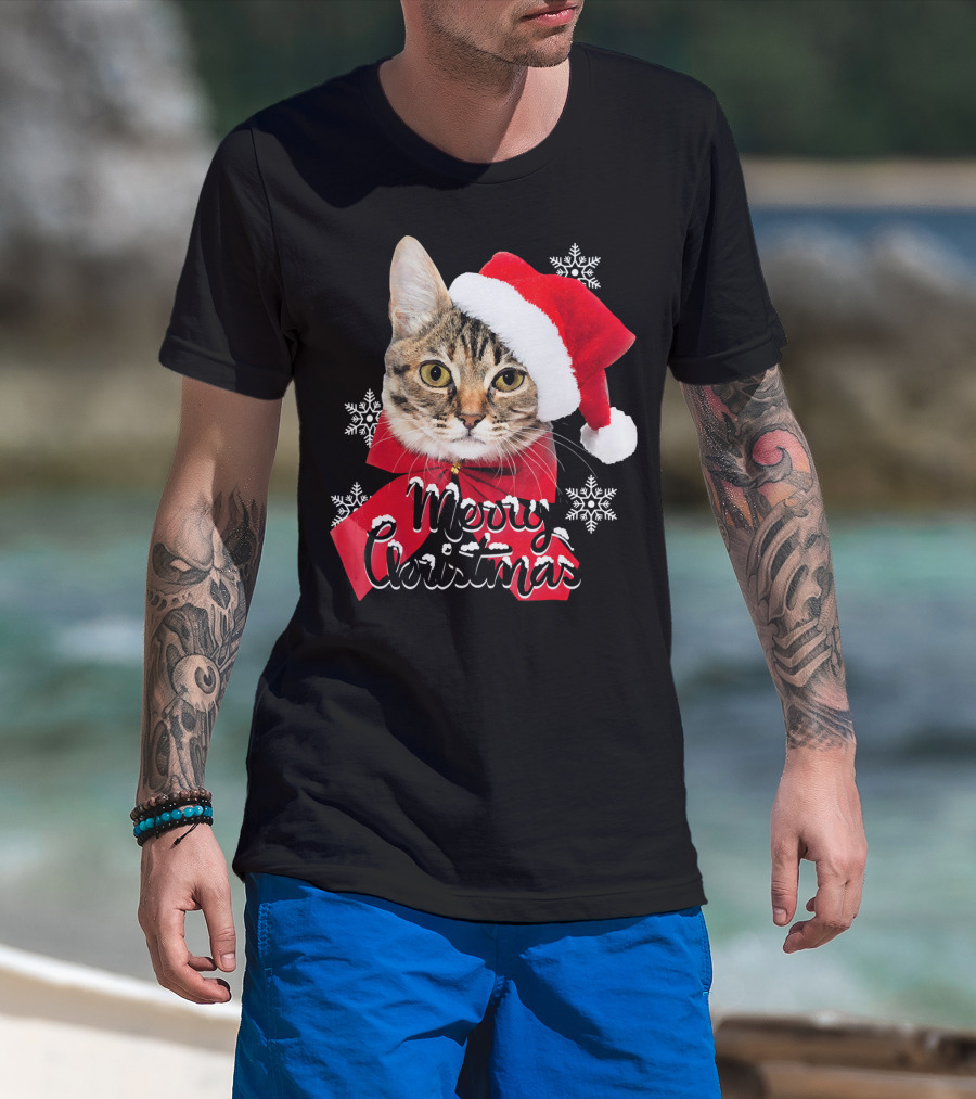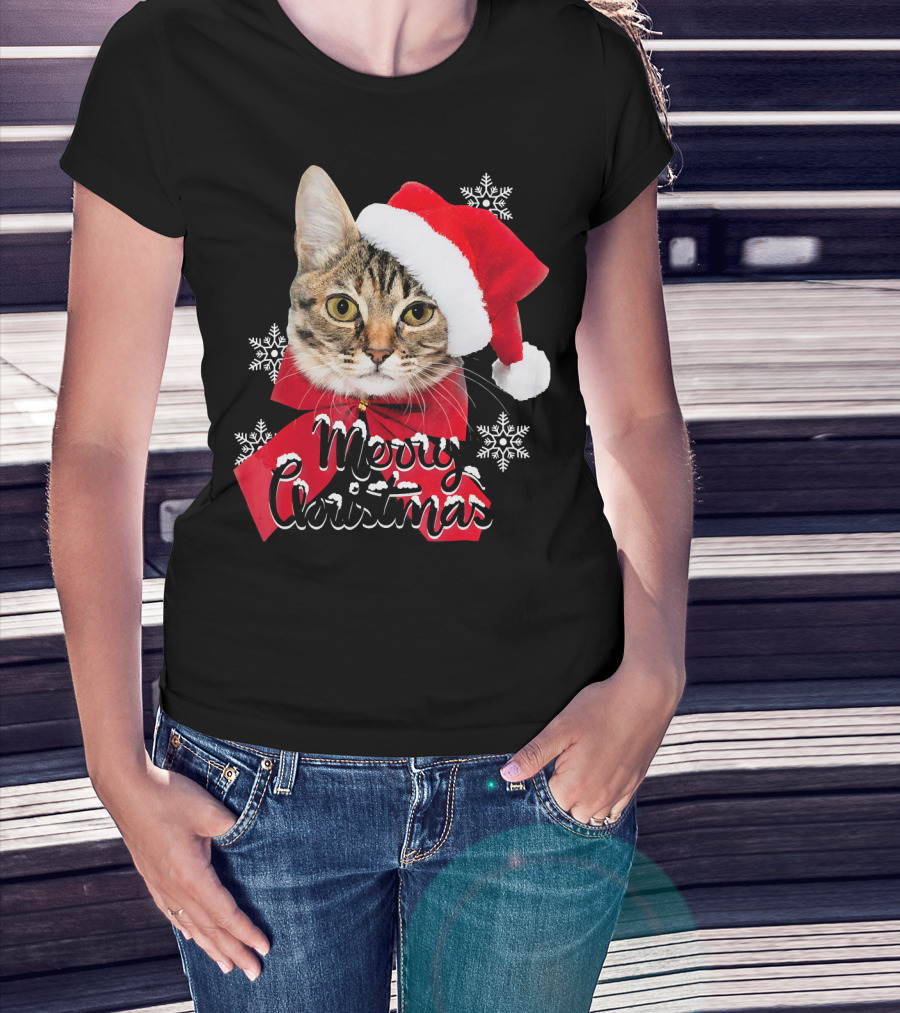 Merry Christmas Funny Cat Women Santa T-Shirt