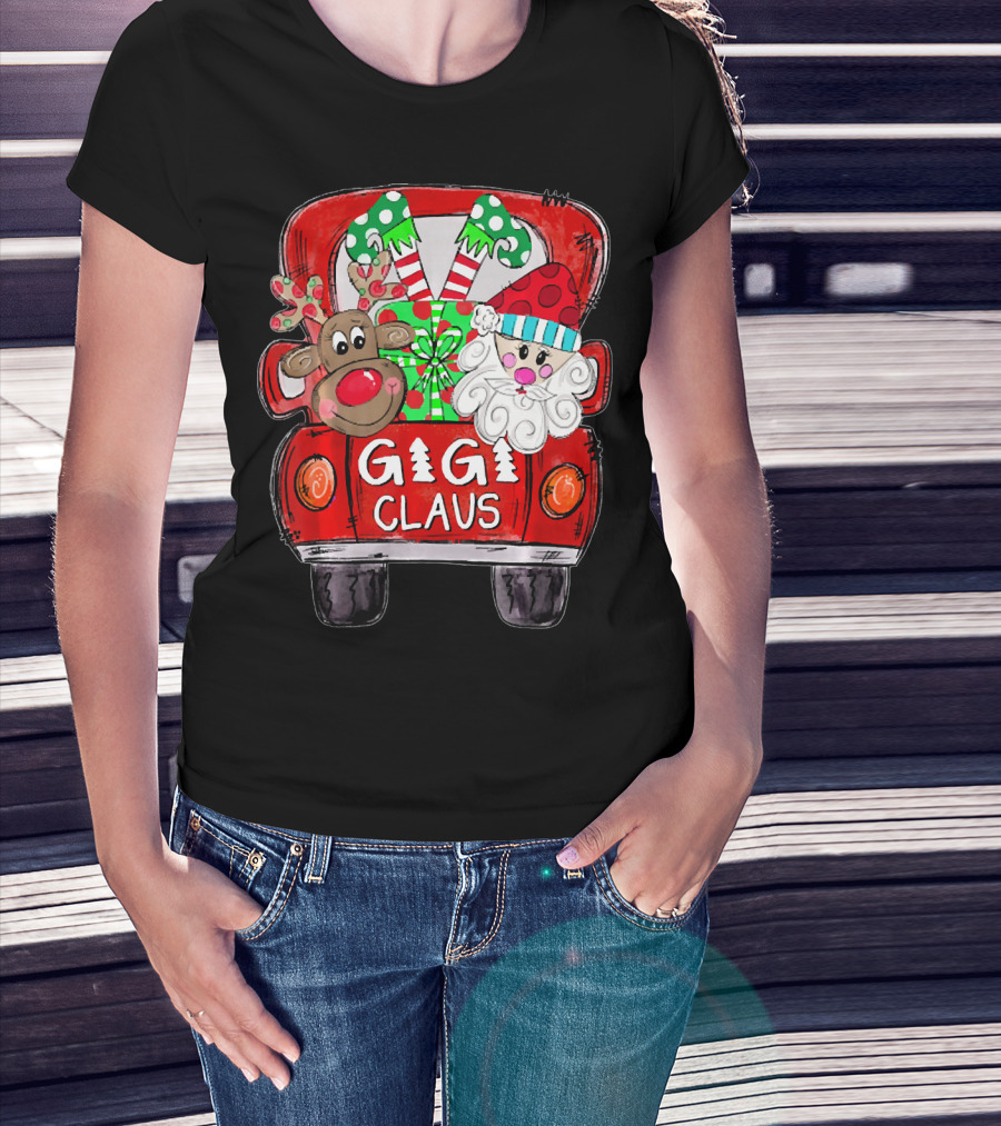 GiGi Claus Christmas Red Truck Reindeer With Gifts And Candy Canes T-Shirt