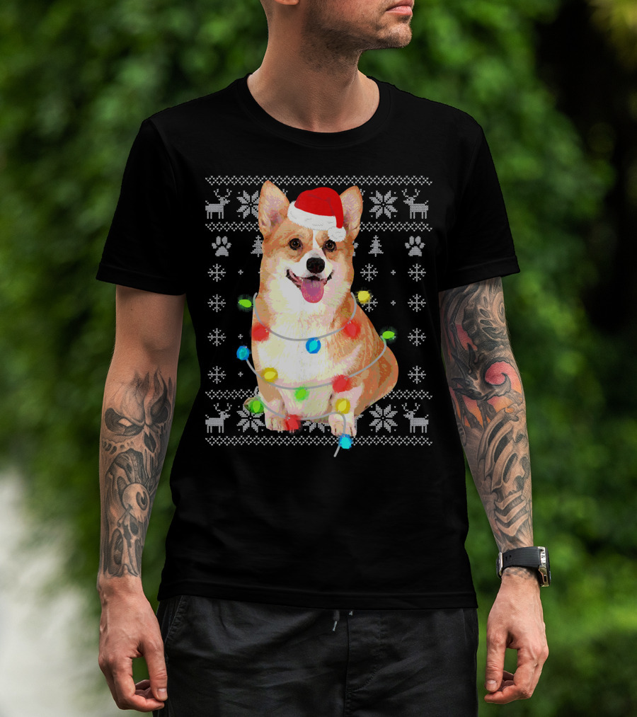 Corgi UglyStyle Christmas Lights Snowflakes Reindeer Dog T-Shirt