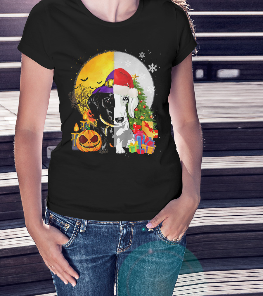 Dachshund Happy Halloween Merry Christmas Dual Holiday T-Shirt