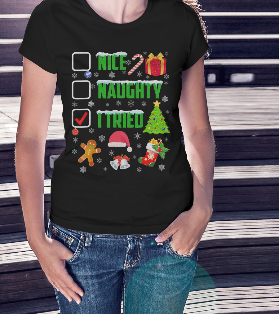 I Tried Nice Naughty Christmas Humor Candy Cane Gingerbread Santa Hat T-Shirt
