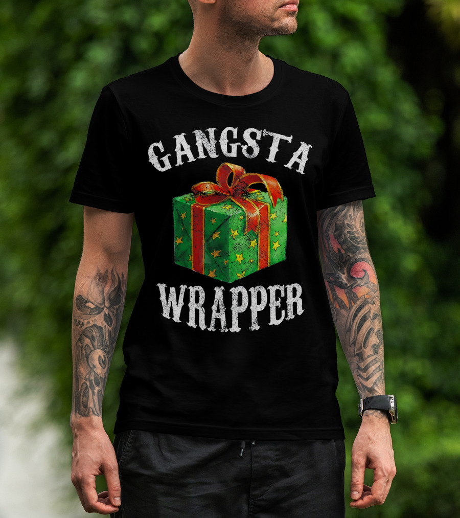 Gangsta Wrapper Green Gift Box With Red Bow And Stars T-Shirt