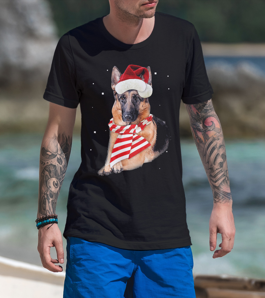 German Shepherd Santa Merry Christmas Holiday Dog T-Shirt