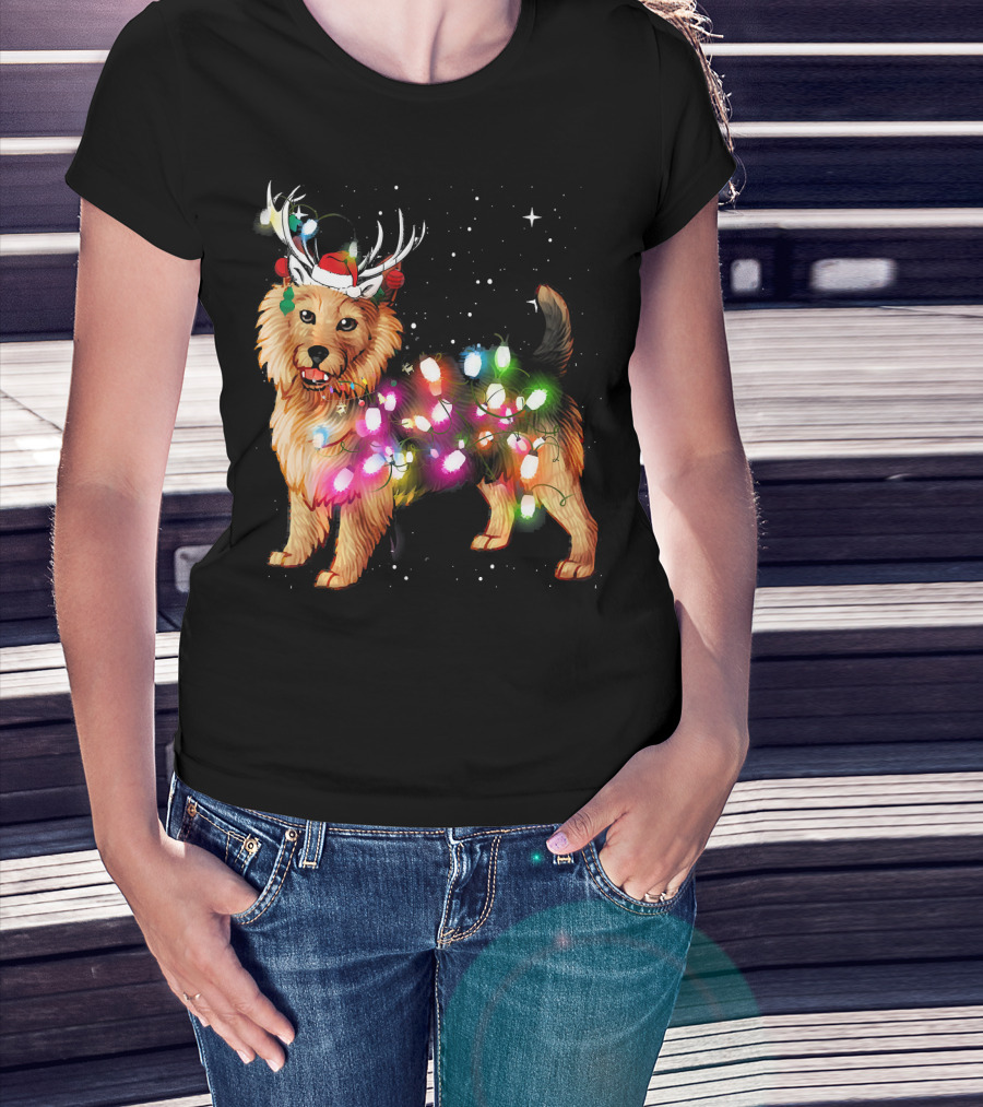 Australian Terrier With Christmas Lights And Reindeer Antlers T-Shirt