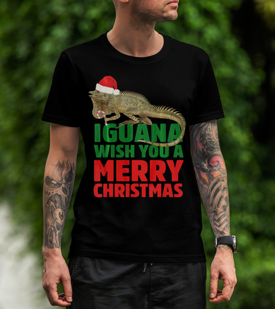 The Iguana Wish You A Merry Christmas Santa Hat Candy Cane T-shirt is designed for everyday wear and a consistent fit. Fabric is pre-shrunk ring-spun cotton with durable stitching. See the size chart below for exact measurements.