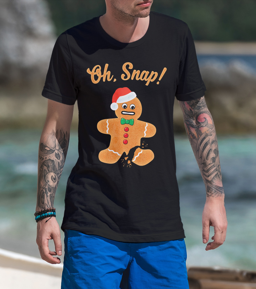 Funny Christmas Gingerbread Man Oh Snap Broken Cookie Santa Hat T-Shirt